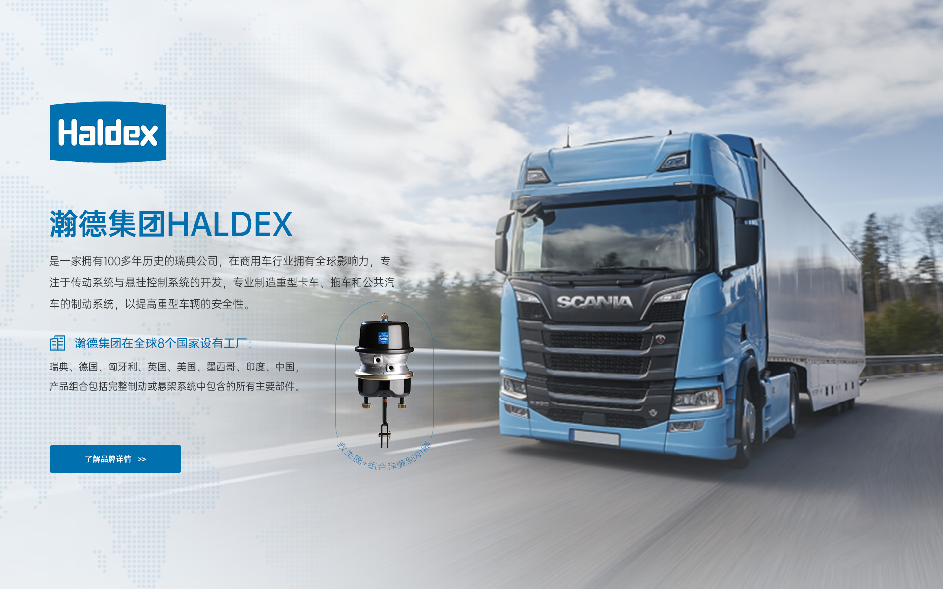 瀚德集團Haldex 是一家擁有100多年歷史的瑞典公司,在商用車行業擁有全球影響力,專注于傳動系統與懸掛控制系統的開發,專業制造重型卡車、拖車和公共汽車的制動系統,以提高重型車輛的安全性。瀚德集團在全球8個國家設有工廠:瑞典、德國、匈牙利、英國、美國、墨西哥、印度、中國,產品組合包括完整制動或懸架系統中包含的所有主要部件。